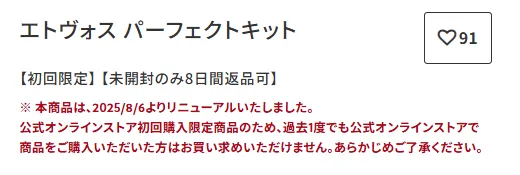 結論から言うと、エトヴォスのパーフェクトキットやトライアルキットは基本的に1人1回限りの購入制限があります。