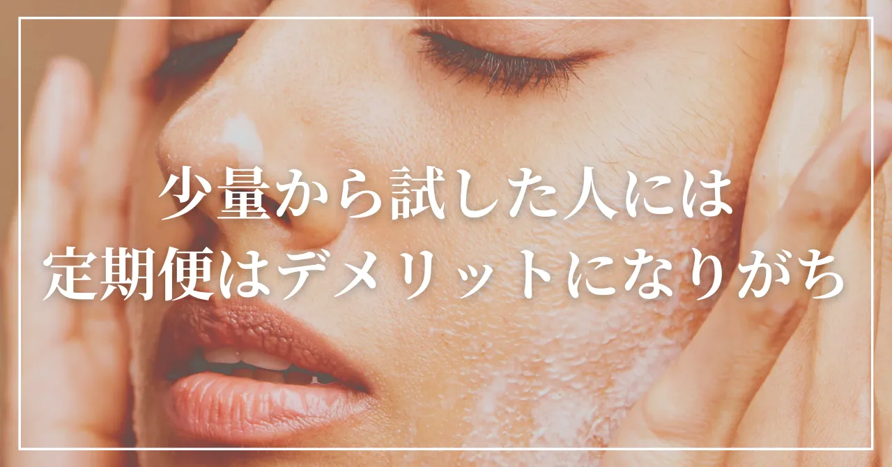 そのため、「肌が敏感」「新商品を試すのが不安」という人は、定期便ではなく少量のトライアルセットで試してから切り替える方が賢明です。